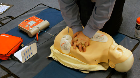 We are able to offer a one day course in Automated External Defibrillation (AED) training which conforms to the current Resuscitation Council (UK) guidelines. This device can be used to administer measured electric shocks during CPR to people in cardiac arrest and is the best way of increasing the chance of survival. The chances of successful defibrillation decline at a rate of 7-10% with each minute. Basic life support may help to sustain a shockable rhythm but is not a definitive treatment.